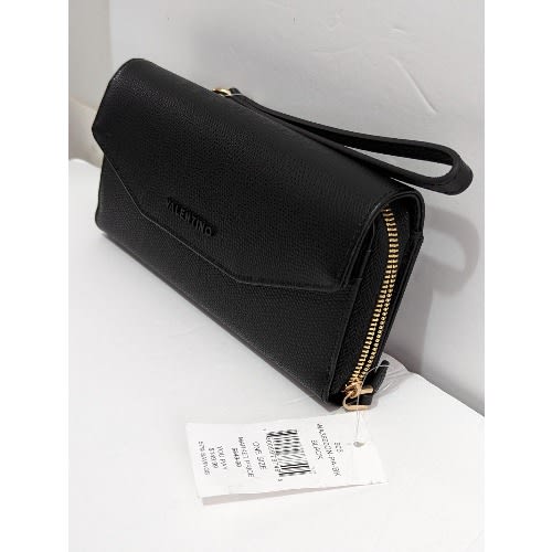 Valentino Marcus Palmellat Leather Wristlet Wallet (Black)