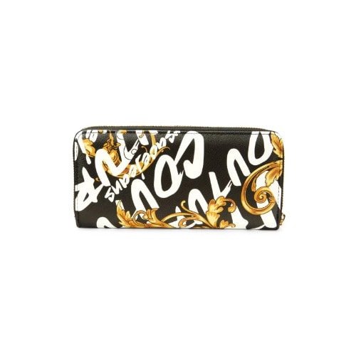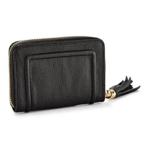 Women's Zippered Wallet With Tassel, Black & Gold Trimmings