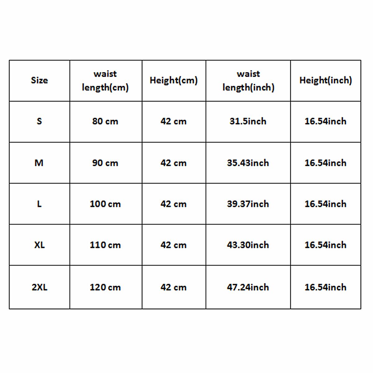 2XL(waist length :47.24' height :16.54')