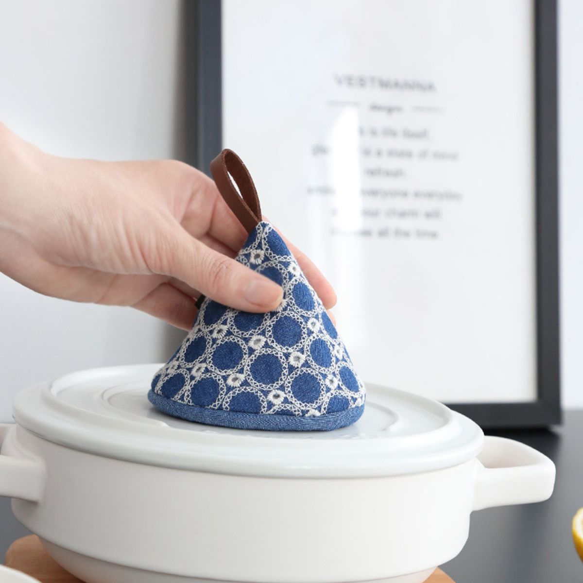 You can use this pot cover mitt which is with anti-slid surface you to easily grip the pot cover without sliding. Anti-hot glove is easy to store and can be washable, which is lightweight, soft and hanging design.