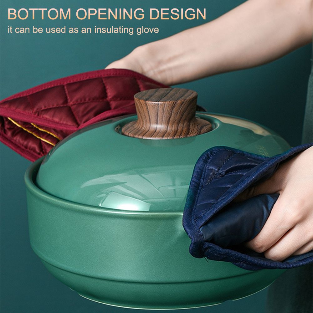 This pot holder allows you to safely remove hot dishes pans, and pots, which helps to protect your hands and arms from the heat of the oven.