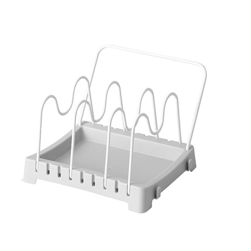 1. material: iron and pp material, the pot cover holder features high durability and smooth surface, prevent from damaging the pot coating, safe and healthy.