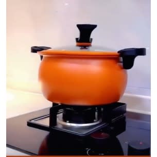 Orange Pressure Pot makes your cooking experience easy and more pleasant. It flaunts an upscale, ergonomic design to keep the handles cool. It features bold curves and minimalist styling which makes it a visual delight. The pressure gas cooker boasts of multiple safety features and is manufactured from high quality polished virgin aluminum for a longer life. it cooks food three times faster than normal and makes it very soft. Foods like Beans, strong Meat and other hard foods can be cooked with pressure pot. It has a 5Litres capacity, a strong aluminum steel body, anti rust protected, easy to clean and maintain.