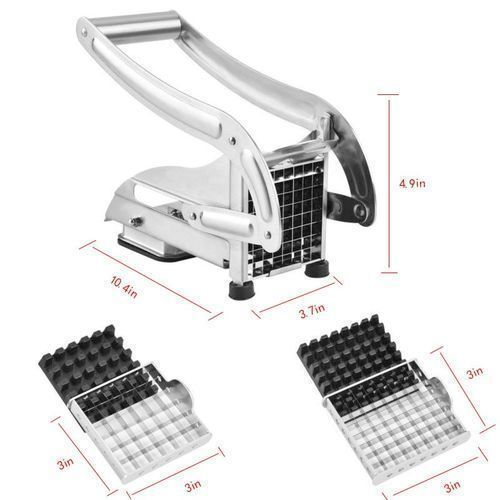 - This french fry cutter come with 2 interchangeable sturdy stainless steel blades, you can choose the regular size or thinner gourmet style.