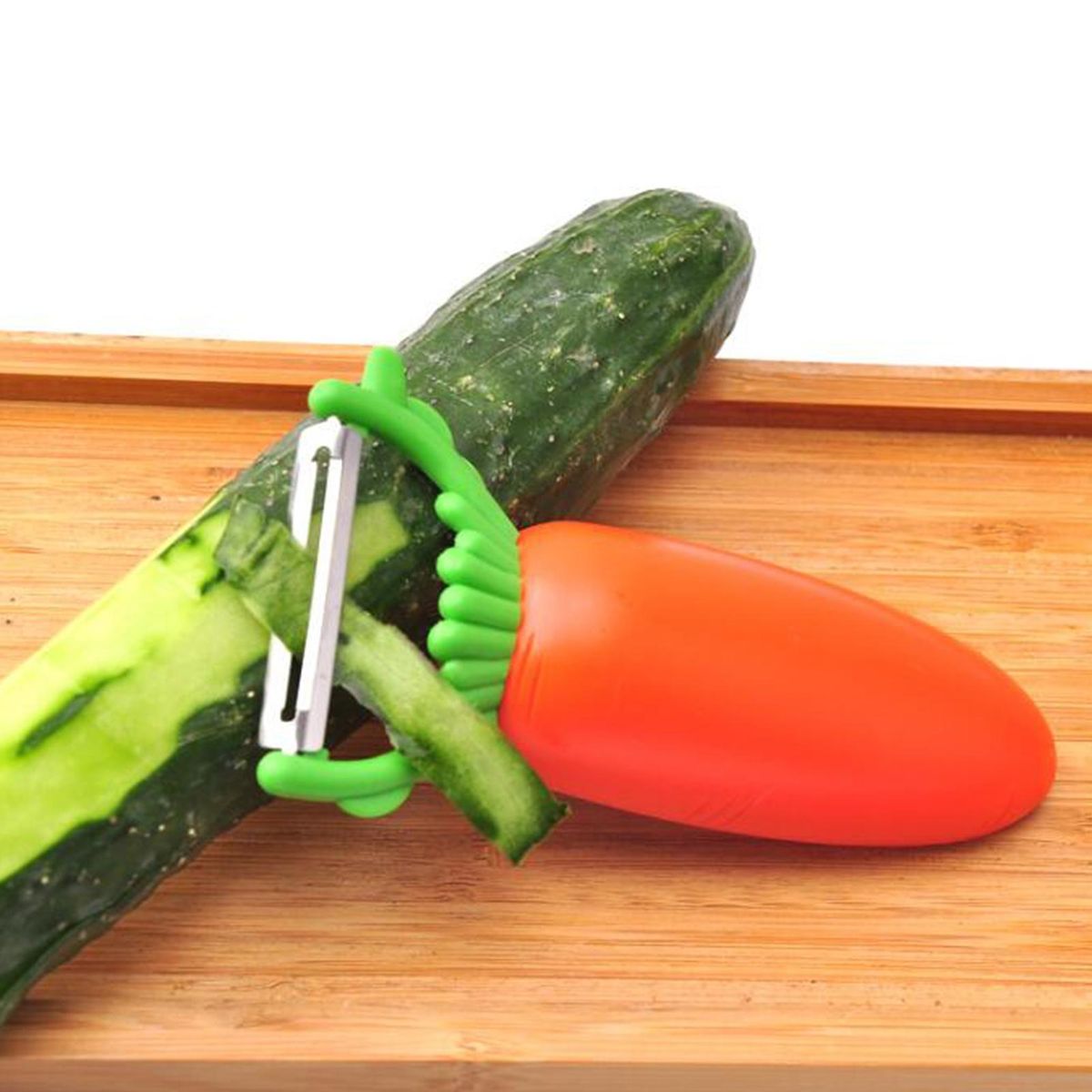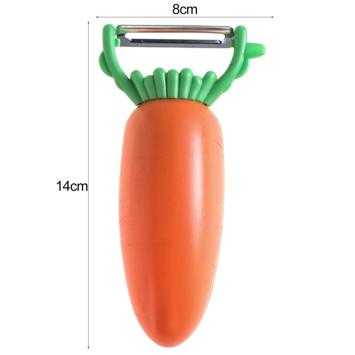 The vegetable peeler is made of stainless steel and PP material. And the carrot shape makes it look cute.