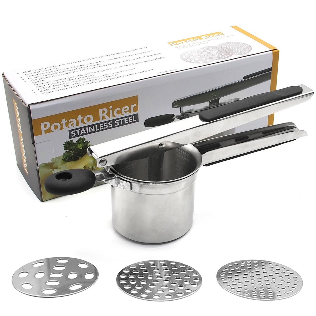 Potato ricer with 3 interchangeable discs in fine, medium, and coarse, it can help you create perfectly smooth, creamy, restaurant-quality mashed potatoes. A must-have for your kitchen or as a gift for anyone who loves to cook, also suitable for commercial and business uses.