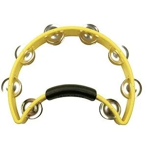 Clap and ShakeThis Hand-held Half Moon tambourine. Consists of 40 metal jingles and a naturally shaped hand grip, this tambourine has a distinctive warm musical sound and is easy to use.