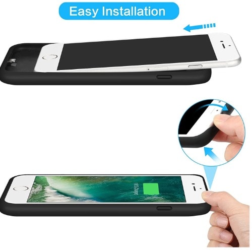 It is a convenient installation charger case, just put your phone on the battery case and no more action is needed even in the case of charging. Protective Charger Case Fully protective ultra-resistant case and battery.Portable Charger protects your iPhone from scratches and other daily wear and tear, yet small and convenient enough to fit easily in your hand or in your pocket. Suitable for iPhone 6/6s The powerful 3200mAh rechargeable battery can effectively provide enough power to your iPhone 6/6S. Simultaneously charge your iPhone and battery case together. Indicator for charging LED battery level indicator lets you know exactly how much power you have. Simultaneously charge your iPhone and battery case together with the lightning cable. NOTE Cable is not included
