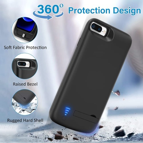 Slim design with accurate cut outs. It is perfect for traveling and outdoor activities. You can also easily access to the buttons and ports of the phone without removing the battery case. Made of high quality material, unique and comfortable tactile impression. Made of high quality material with 360 degree protection, double layer protection to protect your iPhone. Protects the phone from bumps, scratches and dust. The internal safety chips protect the phone from overcurrent, overcharging and overheating. Built in 7800mAh lithium polymer battery, high efficiency and high conversion rate. Ideal for long distance journey and business trip.