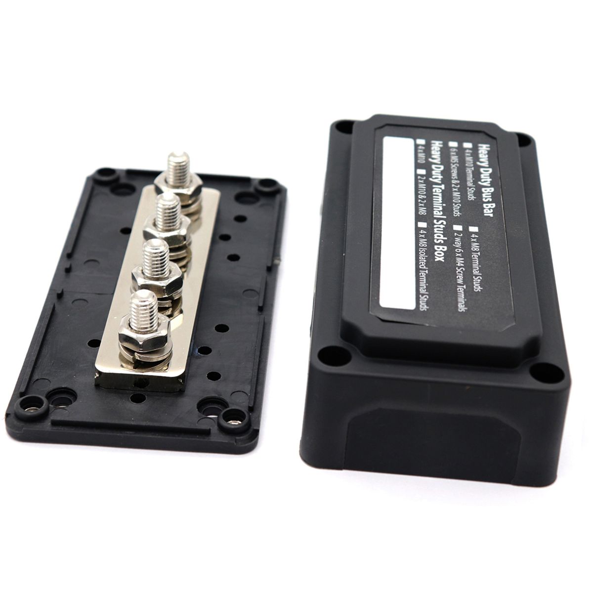 300A power distribution block heavy duty bus bar box with 3/8in M10*4 terminal studs.