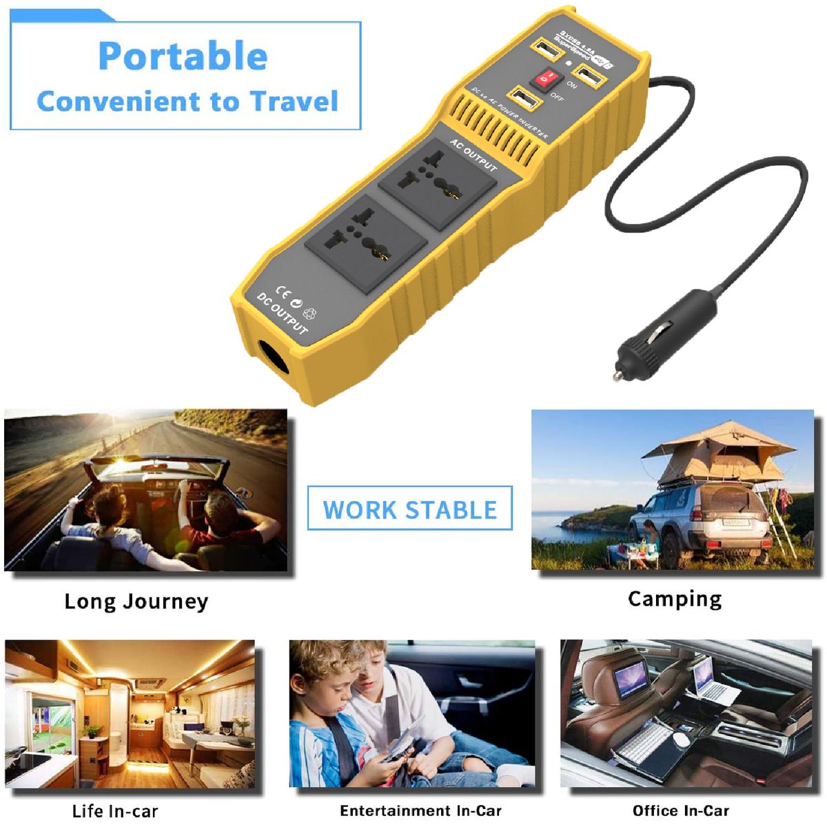 The car inverter helps reduce heat and prevents shortages, and its built-in fuse provide your device full-protection with low-voltage, over-charge, over-voltage, overload and over-temperature protection.
