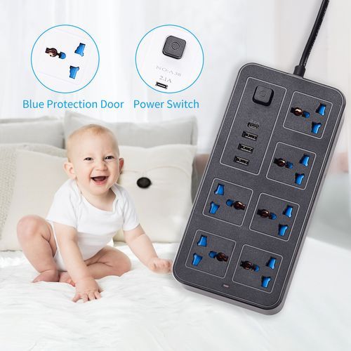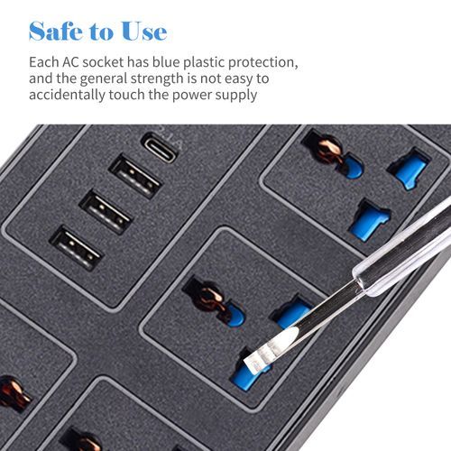 - [Safe to Use]Each AC socket has a blue plastic protection door, and the general strength is not easy to accidentally touch the power supply.