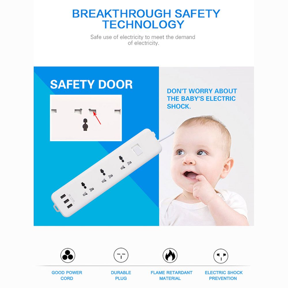 It comes with 3 outlet, 3 USB port and 3-meter long cord, meeting individual demand.