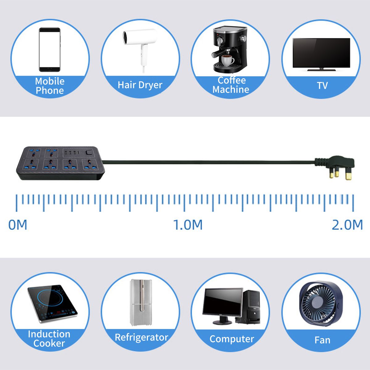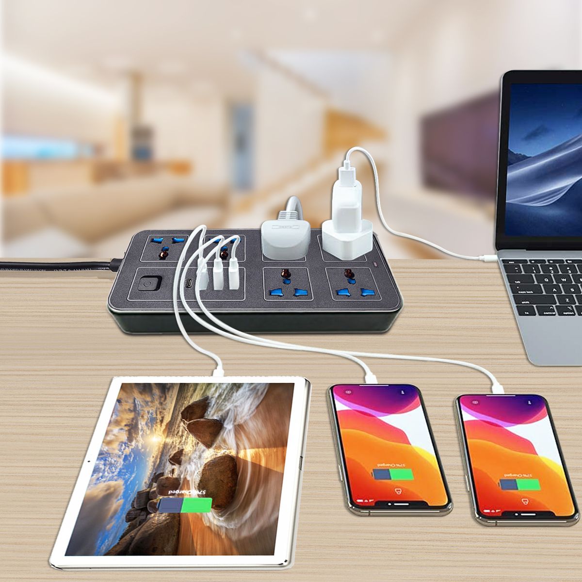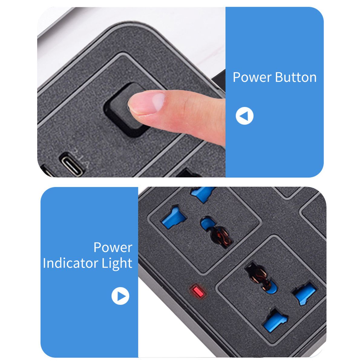 [Practical]With 6 AC outlets load, 3 USB ports, 1 Type C port, and 6ft extension cord. The inner socket is integrated as a copper strip, which is not easy to loosen.
