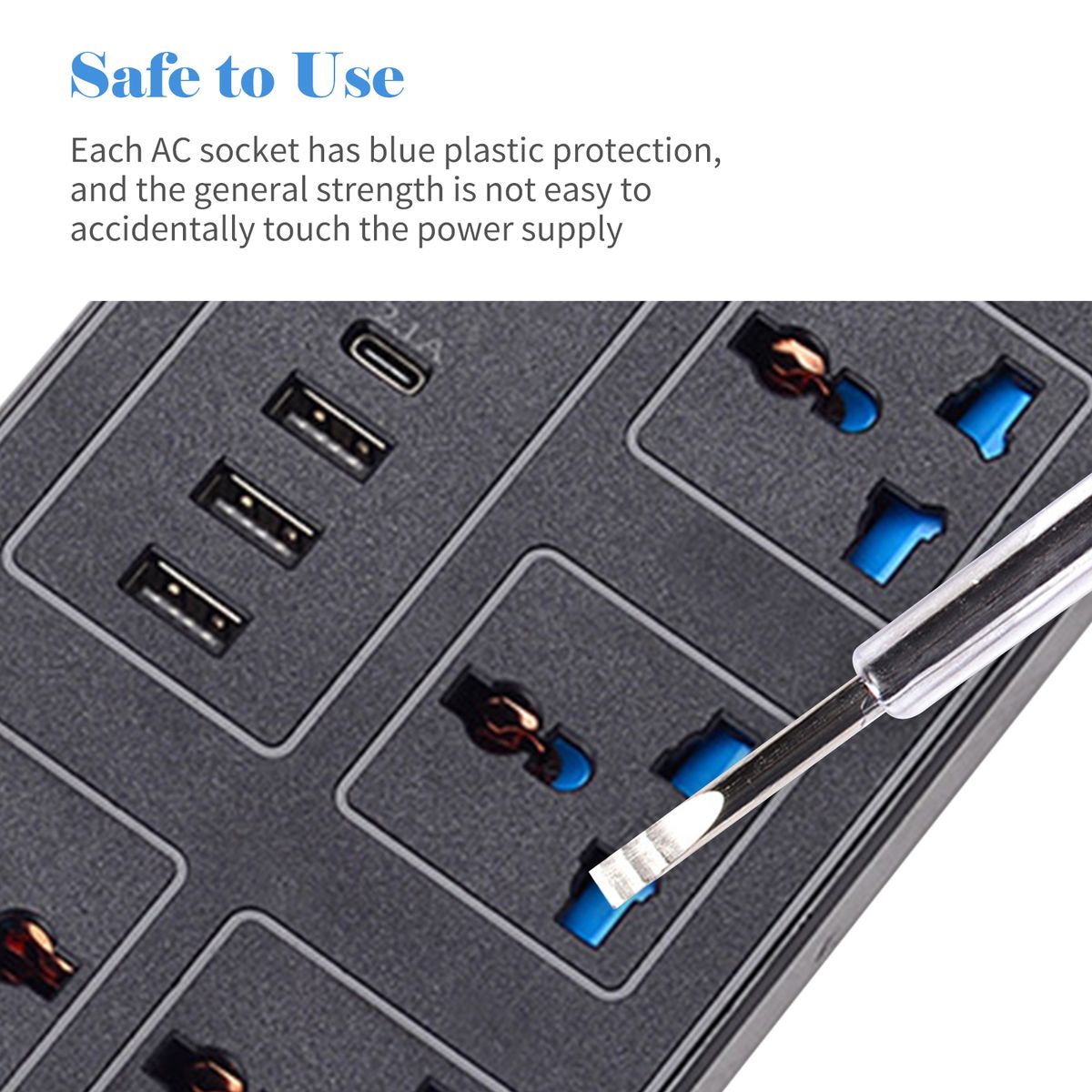 [Safe to Use]Each AC socket has a blue plastic protection door, and the general strength is not easy to accidentally touch the power supply.