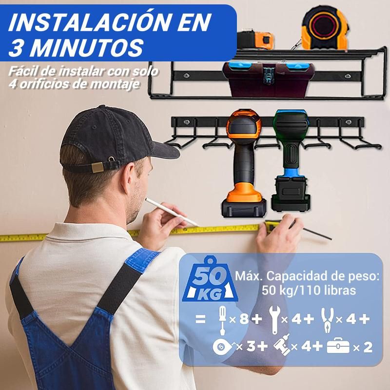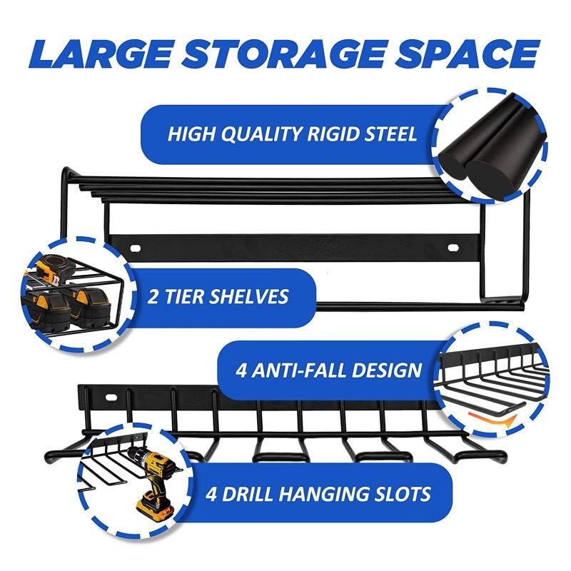 Drill tool organizer can help you full use the space. Transform the wasted wall space into a efficient power tool and hand tool storage and display area. Wall mounted storage racks keep all your commonly used project tools neatly organized in garages or workshops and within arm's reach.