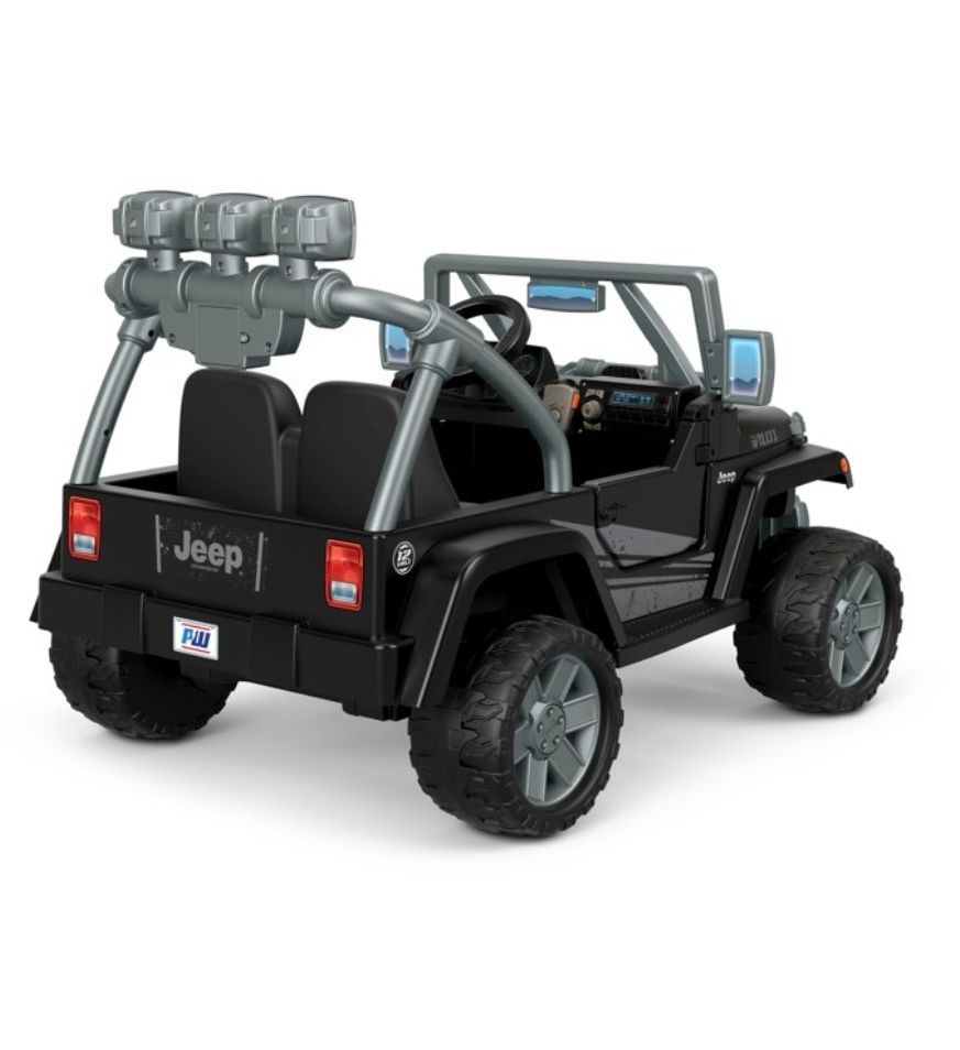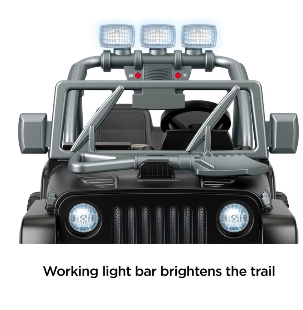 Age Range: 3 to 7 YearsBlack battery powered ride on vehicle with realistic Jeep Willys styling working light bar pretend fog lights and removable toy shovelPretend radio with realistic driving sounds and microphone