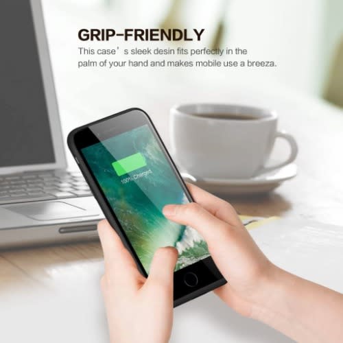 Multi-purpose Protection Cover with extra Backup Battery of 5,000mAh built-in Power Bank for your iPhone 8, Se, 7, 6s, & 6. Keeps you powered on anytime, anywhere. Smooth matte surface with good grip. Flexible rubber surrounding cover to protect your iPhone from scratches.