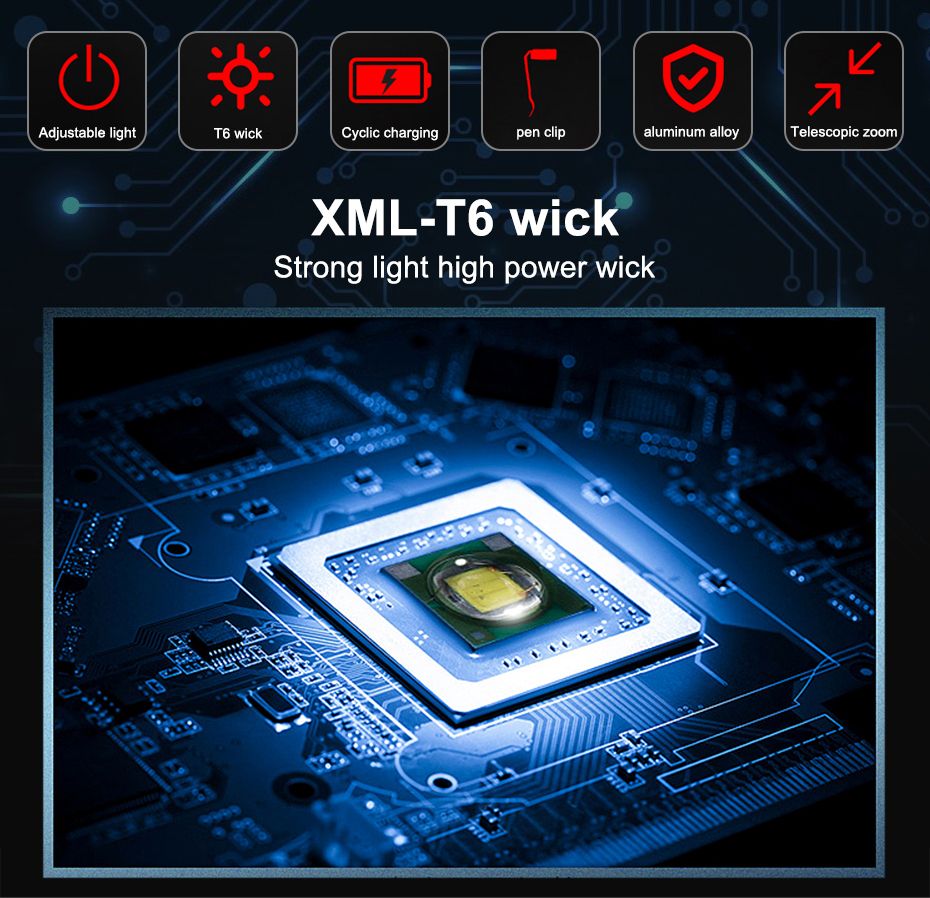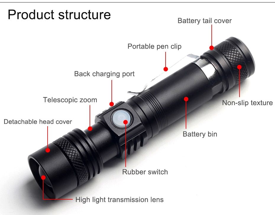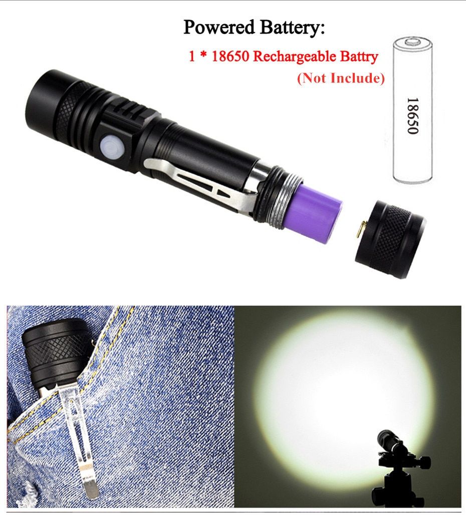1X Powerful led flashlight usb rechargeable Zoom torch T6 LED hand lamp 18650 Battery flash light use for Camping Hiking checking