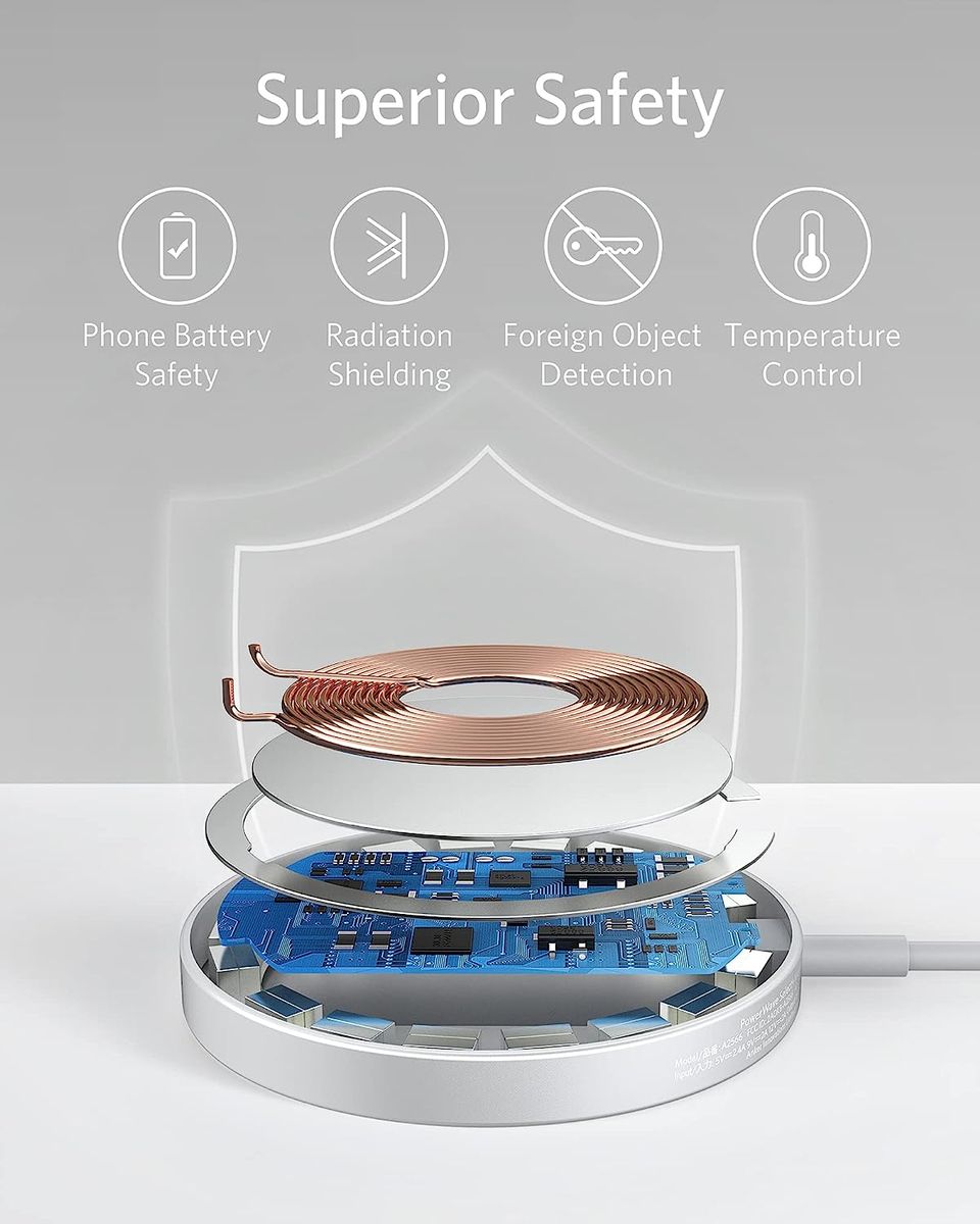 - What You Get: Power Wave Select+ Magnetic Pad with connected 5 ft / 1.5m charging cable, welcome guide, our worry-free 18-month warranty, and Anker's friendly customer