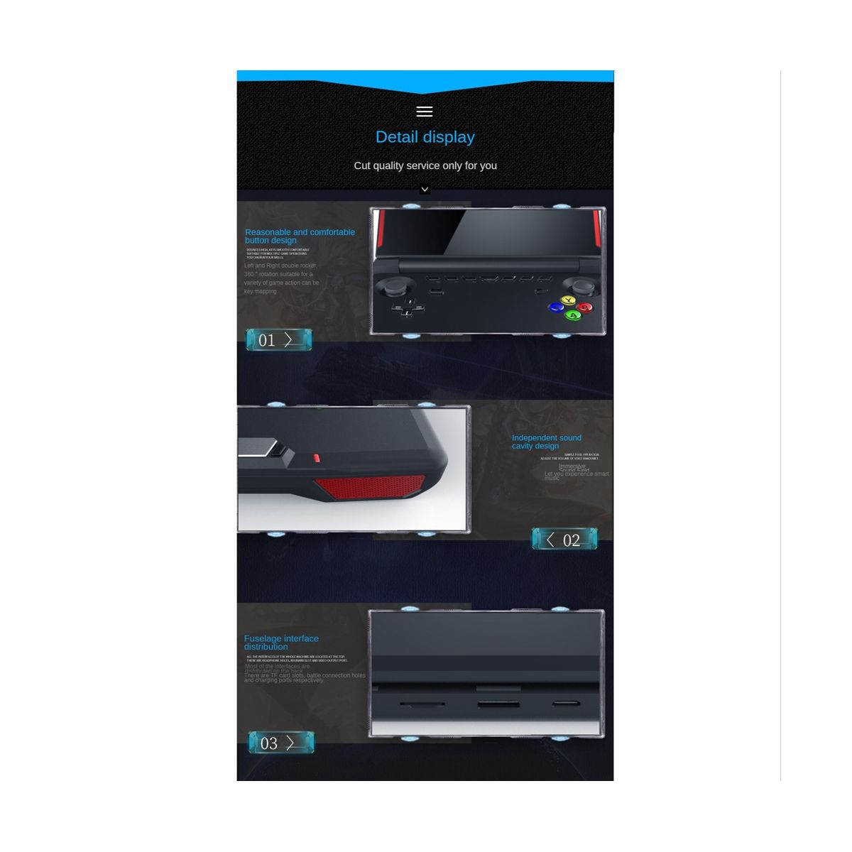 Detailed Information About The Product:1. 5.5 inch IPS touch screen (1280 * 720) Android game console. Quad core A53 64 bit processor 1.3GHz