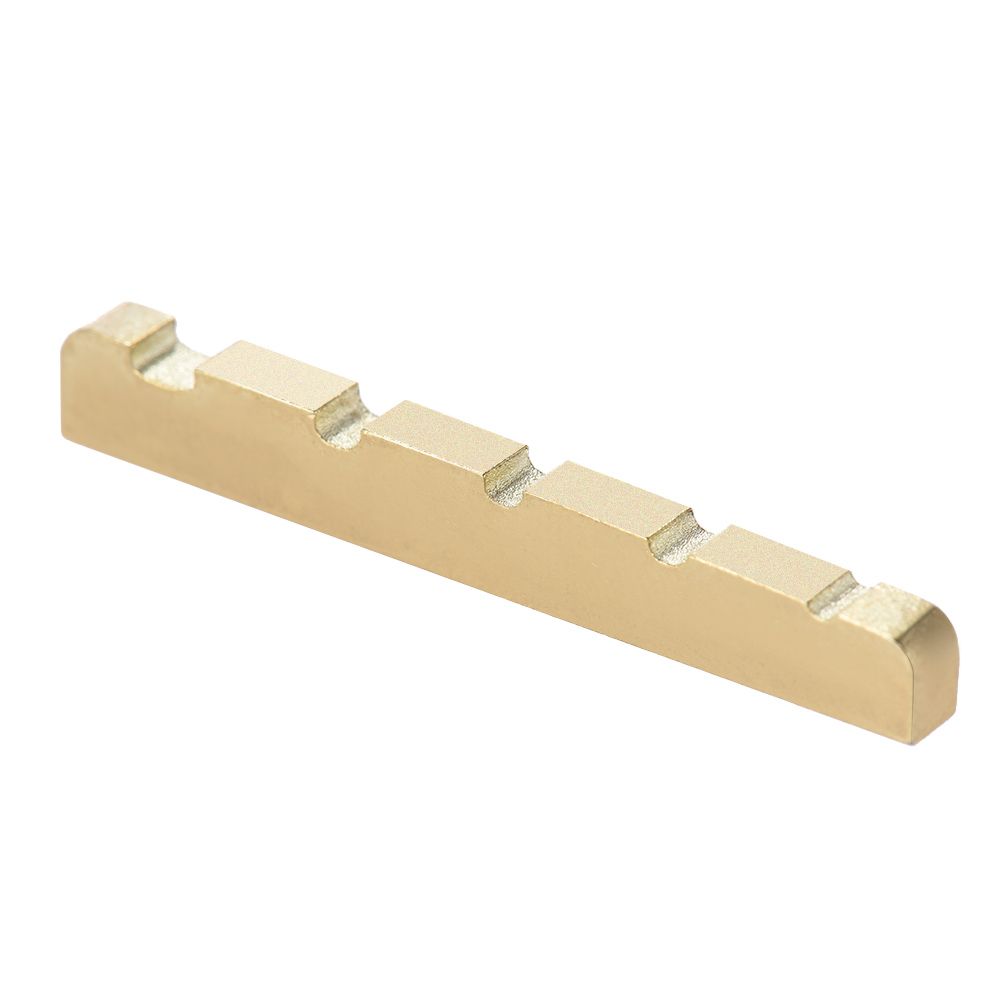 The brass string nut is for 5-string electric bass, the golden glossiness appearance and exquisite workmanship will upgrade your bass to a higher level, and it helps you to produce really great sound.
