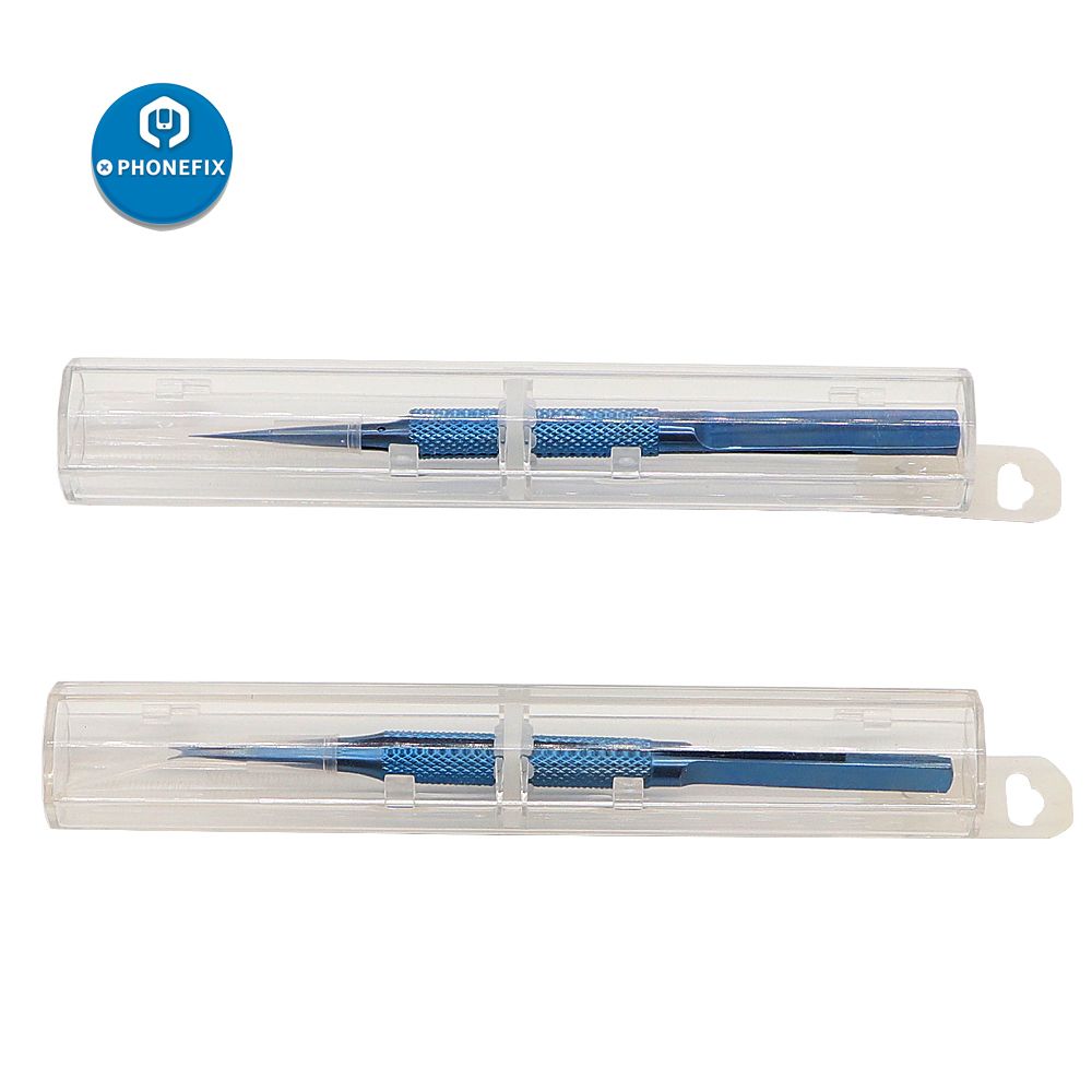High precision, magnetic acid resistance, titanium alloy tweezers, very high fine tip. It is very suitable for phone repair under a microscope, especially cell phone fingerprint Jump Line repair. Anti-Corrosive, Anti-Magnetic, noncorrosive Titanium Alloy Tweezers Great for all soldering applications. Wire Copper Soldering repair on cell phone motherboard, PCB Welding. Solder will not adhere to the tips