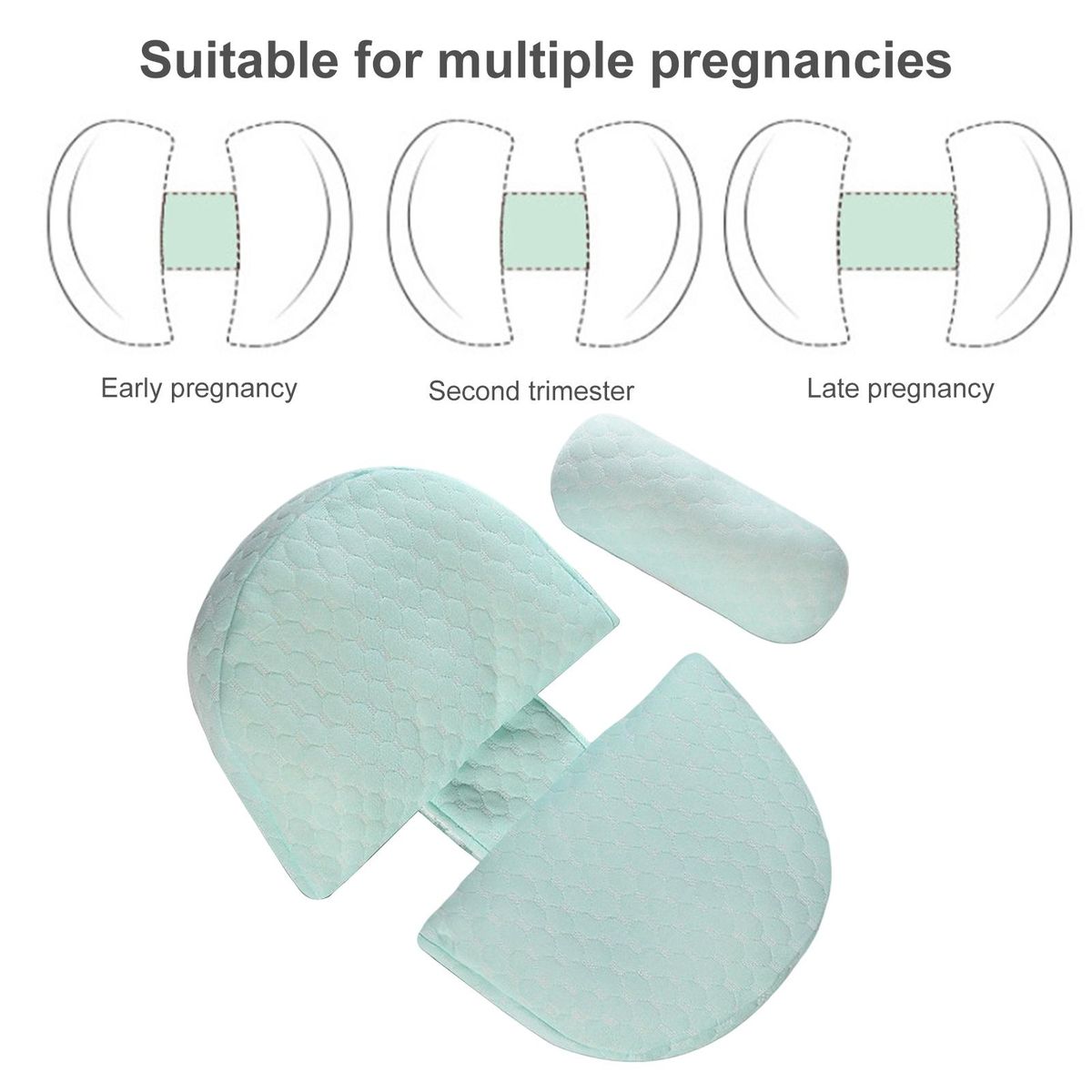 This pregnancy pillow is suitable for various pregnancy-related discomforts such as a large abdomen, sore waist, wrong sleeping position, inaccurate fetal position, edema during pregnancy, and poor sleep quality. it's designed to provide relief from these common discomforts so you can enjoy a restful night's sleep.