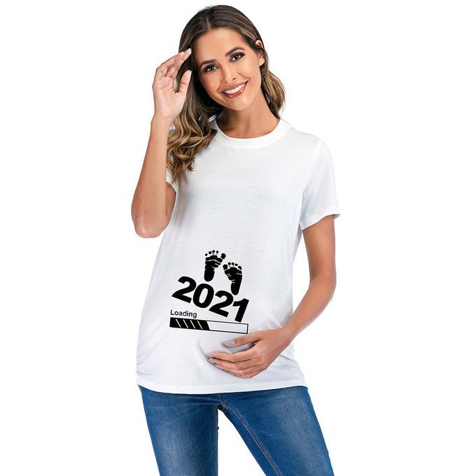 Pregnant Woman Omfortable T-shirt Short Sleeve T-shirt With Number Design-white-XL