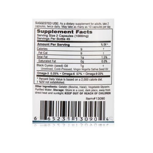 Each 500mg Black Seed Oil MEGA-GELS soft gel is equivalent to 1/4 teaspoon of oil. Black Seed oil is rich source of unsaturated essential fatty acids (EFA's) and offer many nutritional benefits for good health.