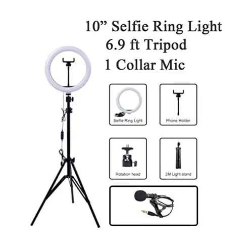 Buy Premium Combo Of 10" Selfie Light (3 Light Modes) With 6.9ft Tripod & Collar Mic in Nigeria