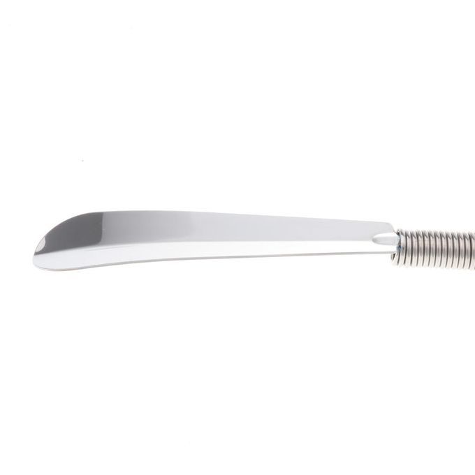 Place the spoon section in the rear of the heel and let the flexible spring guide your foot into your shoes every time.