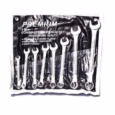 8pcs combination spanner are double end tools that is an open ended form on one end and a closed-loop way on the opposite end. The two heads usually at a 15 degree an gle to the shaft to more reliable access the bolts and nuts. This single tool help the function of Two spanners directly. It is used for plumbing and other usual wear and damage around the home and it's spanners are available in sizes which range from 6mm-19mm which are (6mm, 8mm, 10mm, 13mm, 14mm, 15mm, 17mm and 19mm).