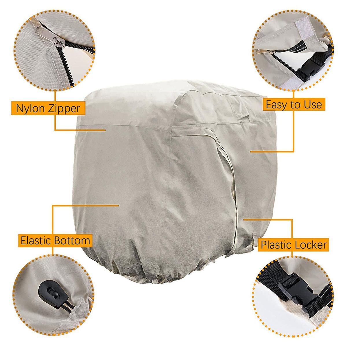 -Elastic bottom hem cord and quick release buckle strap prevent the cover from being blown away.