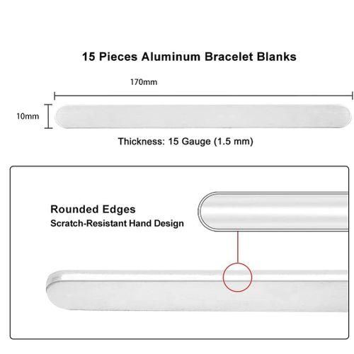 Flat bracelet blank length: 170mm, width: 10mm, thickness: No. 15, each bracelet blanks has a double-sided protective film to prevent surface scratches.