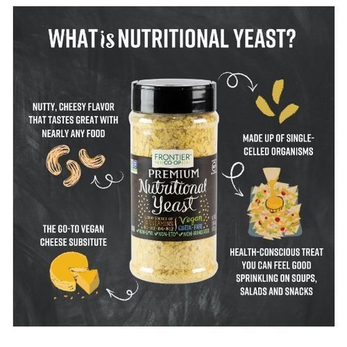 Frontier Co-op Premium Nutritional Yeast has a robust umami flavor that is nutty and cheesy — a versatile pantry staple as a cheese substitute or seasoning for snacks, veggies and sides. Or, add flavor to your go-to veggie or chip dip and creamy sauce recipes. Delicious and a good source of B vitamins — you don't have to be vegan or dairy-free to love nutritional yeast.