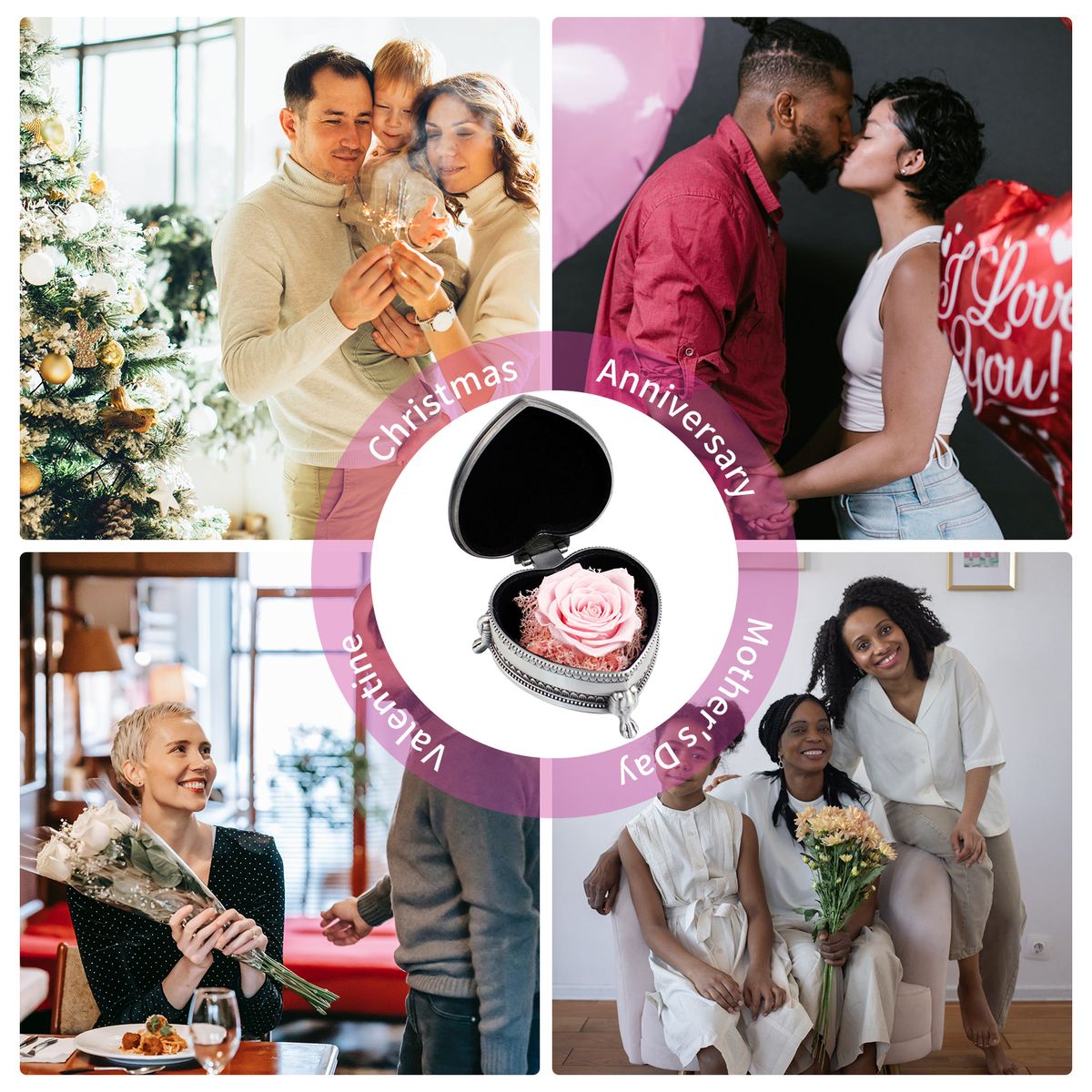[Widely Applicable]Rose is well preserved in a heart-shaped classic antique metal case. It can be creating a warm and romantic atmosphere.