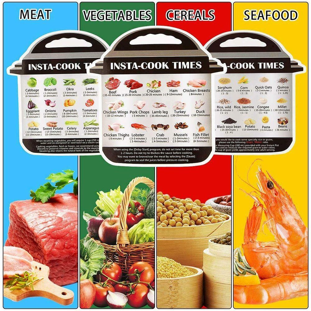 These products has a much higher temperature resistanc,no rust forever and corrosion resistance,cleaned up easily after a heavy usage and sturdy, durable and dishwasher safe,3pcs extra of Vegatables/Grains/Meat, you can put on my ice box for easy access,so that you don't have to find a cookbook or search for cooking times, very convenient and useful.