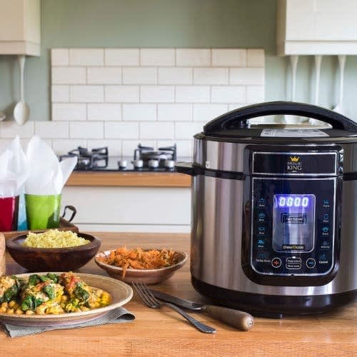 Make great food faster, healthier and easier. Introducing the bestselling, compact kitchen king & ndash; the 12in1 Digital Pressure King Pro. Perfect for families, the 5-litre capacity lets you cook perfect meals at the touch of a button, up to 90% faster than traditional cooking methods! Worry-free cooking with 12 pre-set functions, you'll get that amazing, slow-cooked taste in fast food time! Cooks with pressured steam, cooking your food faster, locking in more vitamins and nutrients.