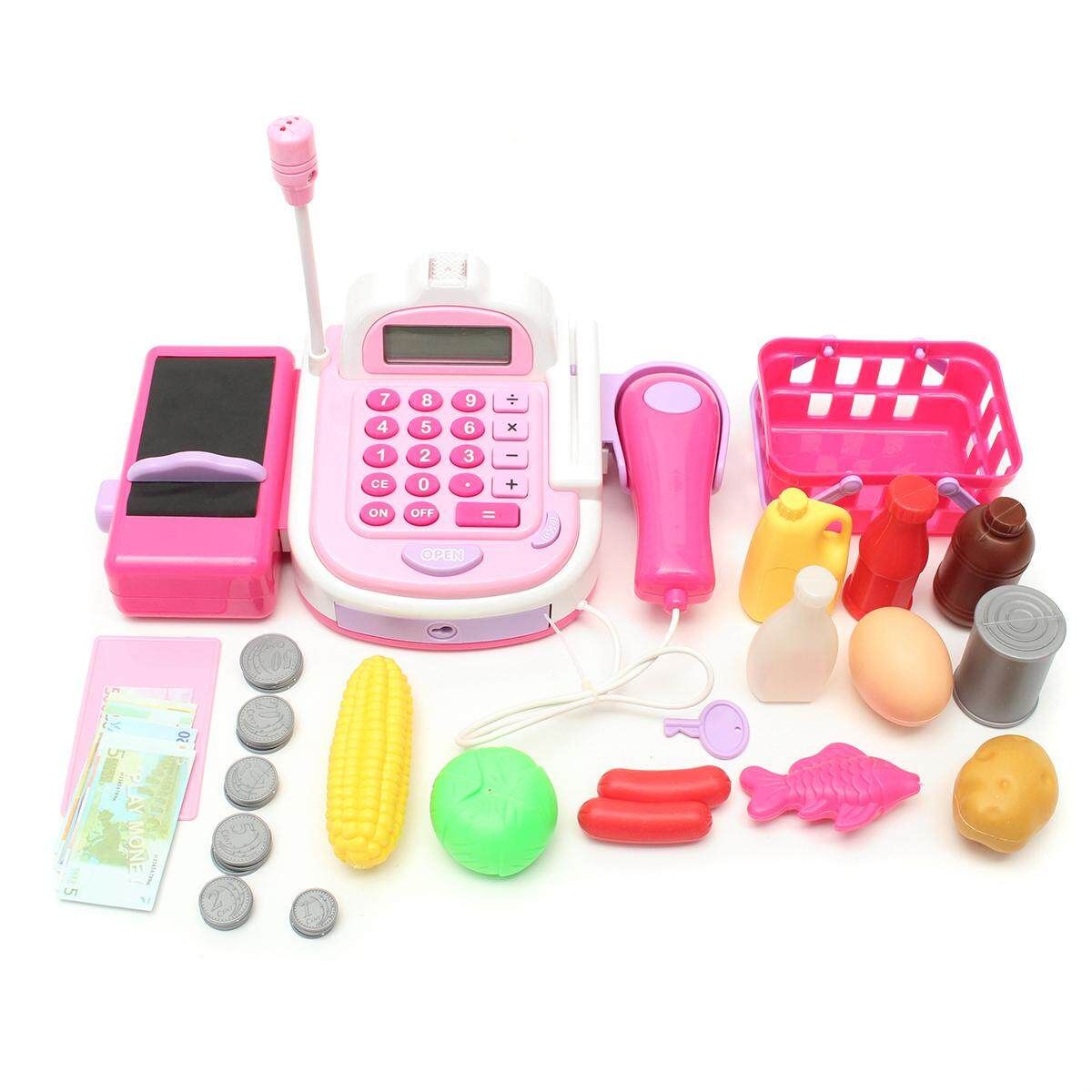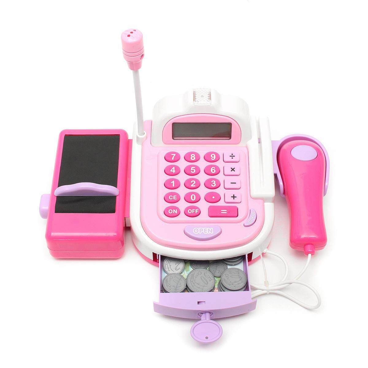 Include a built-in calculator, checkout scanner, microphone, and cash drawer, sticker.