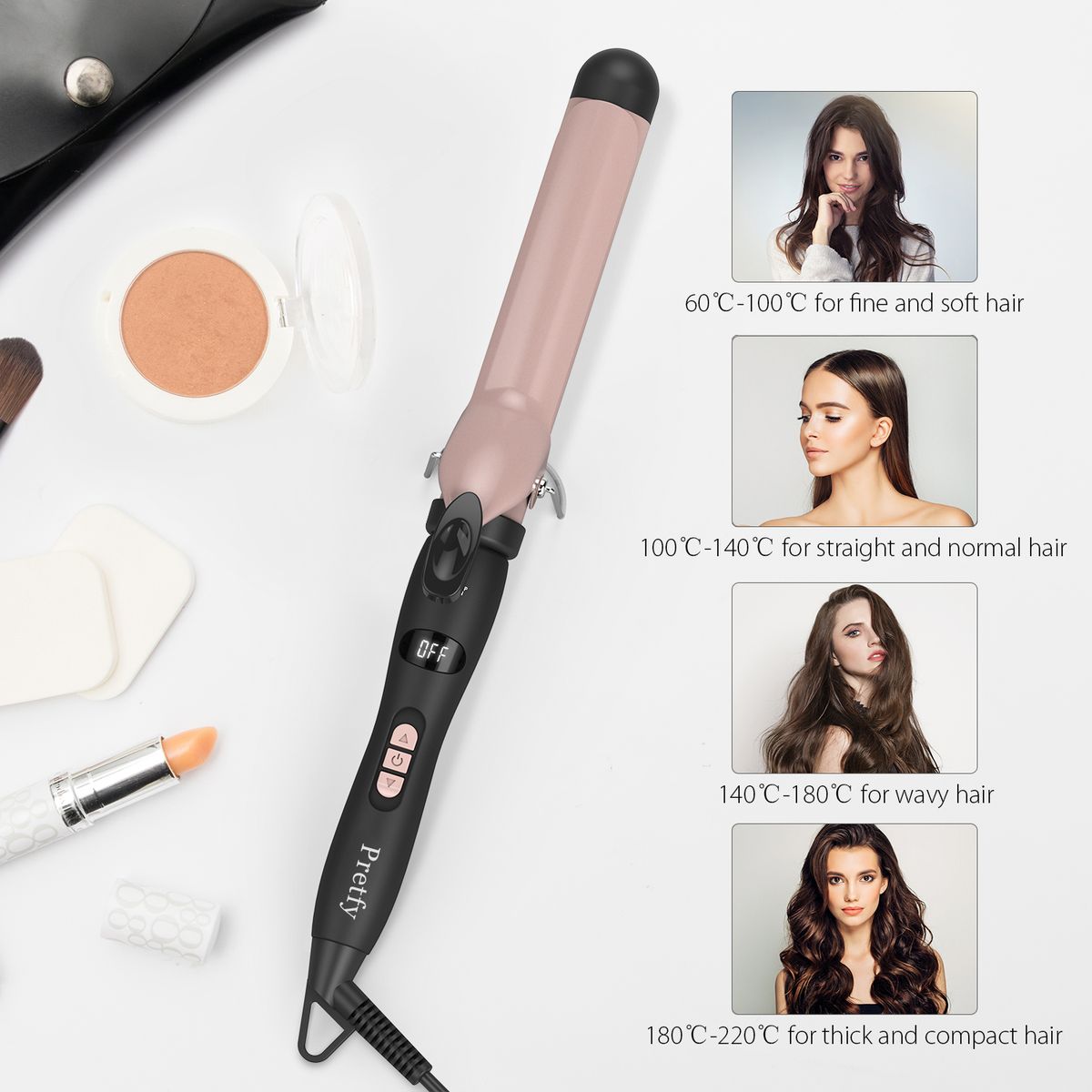 The LCD screen shows the adjustable temperature with a range between 140 - 430℉ (60-220℃).