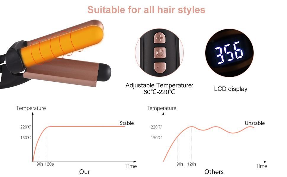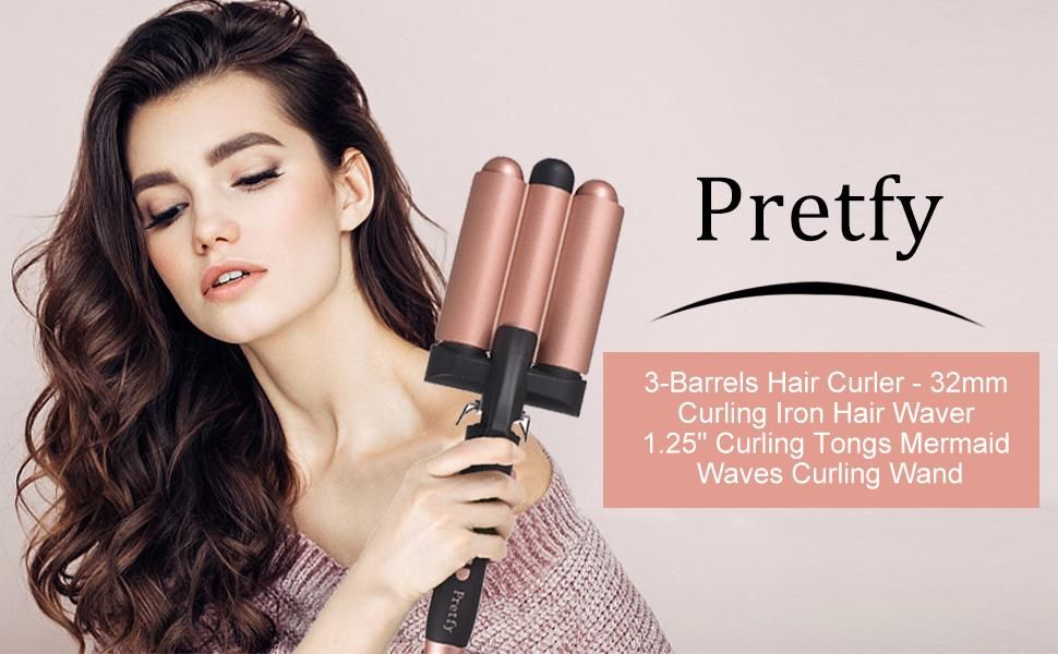 Buy Pretfy Hair Curling Iron 3-Barrel 32mm Hair Waver Hair Curler Temperature Adjustable LCD Temp Display Hair Styling Tool in Nigeria