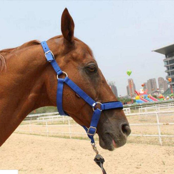 Adjustable Nylon Webbing Equestrian Western Horse Halter Horse Riding Wear Blue L