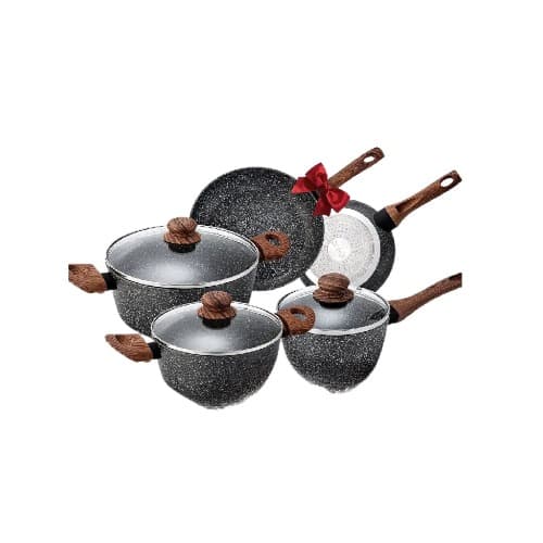 Prikoi Induction Non Stick Granite Pots And Pans - Set 8 Pieces