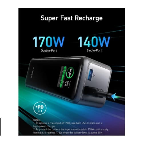 The Anker Prime Power Bank, boasting a substantial capacity of 27,650mAh and a high-output of 250W, sets a benchmark in the portable charger market. One of its most notable features is its ability to deliver rapid charging speeds, thanks in part to the utilization of advanced charging technologies. The power bank supports Power Delivery (PD) and Quick Charge (QC), allowing it to efficiently charge a wide range of devices, from smartphones to laptops.