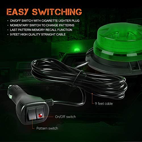 - ENHANCED VISIBILITY: This Green strobe light bar omes with no less than 24 high-intensity LEDs, 8 strobe patterns and a high transpareny polyarbonate shell, providing 3 lighting overage and an optimal visibility regardless of weather onditions.
