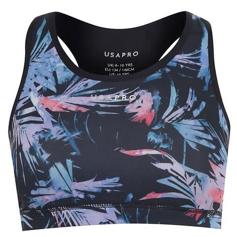 Upcoming athletes will feel top of their game in the USA Pro fitness crop top. Designed with a round scoop neck, racer back, and an elasticated chest band, this is perfect for those sports fanatics.