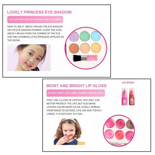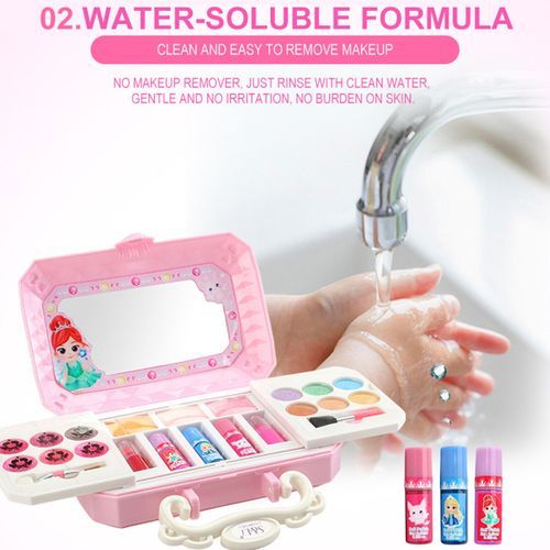 Function: Make-up tools and toys specially developed for children, need to use clean water to remove makeup, without the need for professional makeup removal tools.