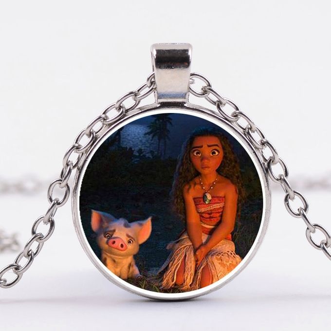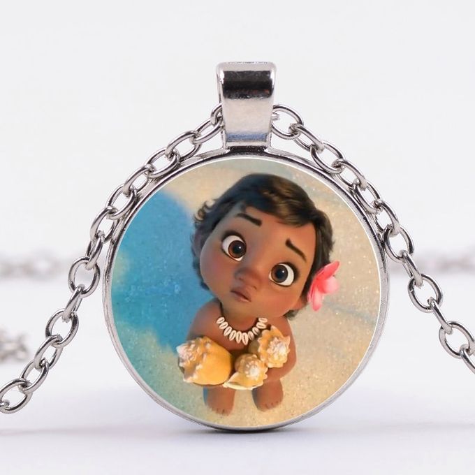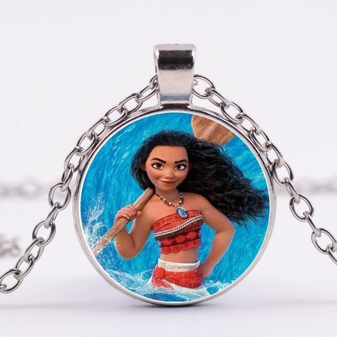 1X SONGDA Princess Moana Little Girl Necklace Cartoon Movie Pattern Glass Cabochon Pendant Children Long Chain Necklace Party Gift