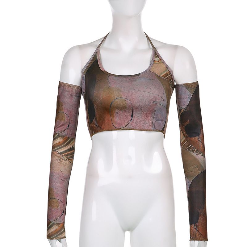 Buy Printed Brown Corset Vintage Crop Grunge Kawaii With Glove Sweats Women Camis in Nigeria